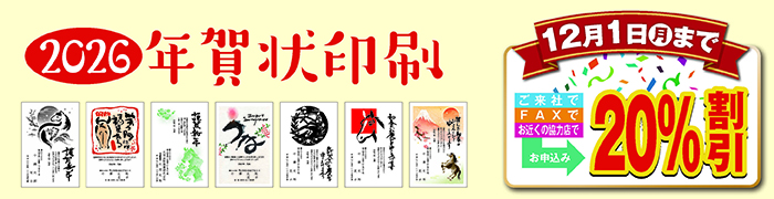 年賀状・喪中はがきのお申込みは、上記の「FAXお申込み用紙」をダウンロードして、必要事項を記入の上FAXでお送りください。